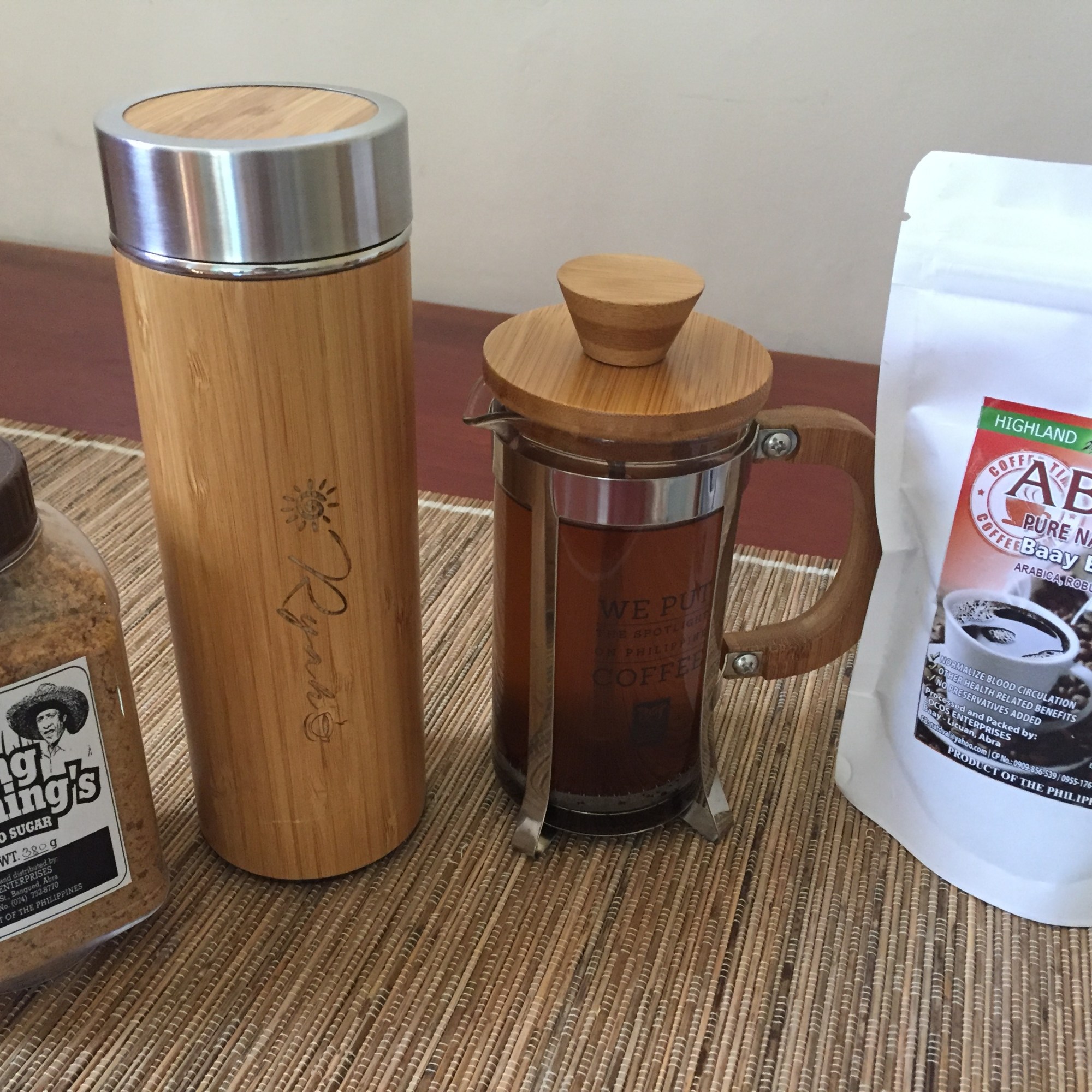 - instead of drinking plastic-packaged instant coffee, I usually drink locally-produced coffee using my locally-made french press