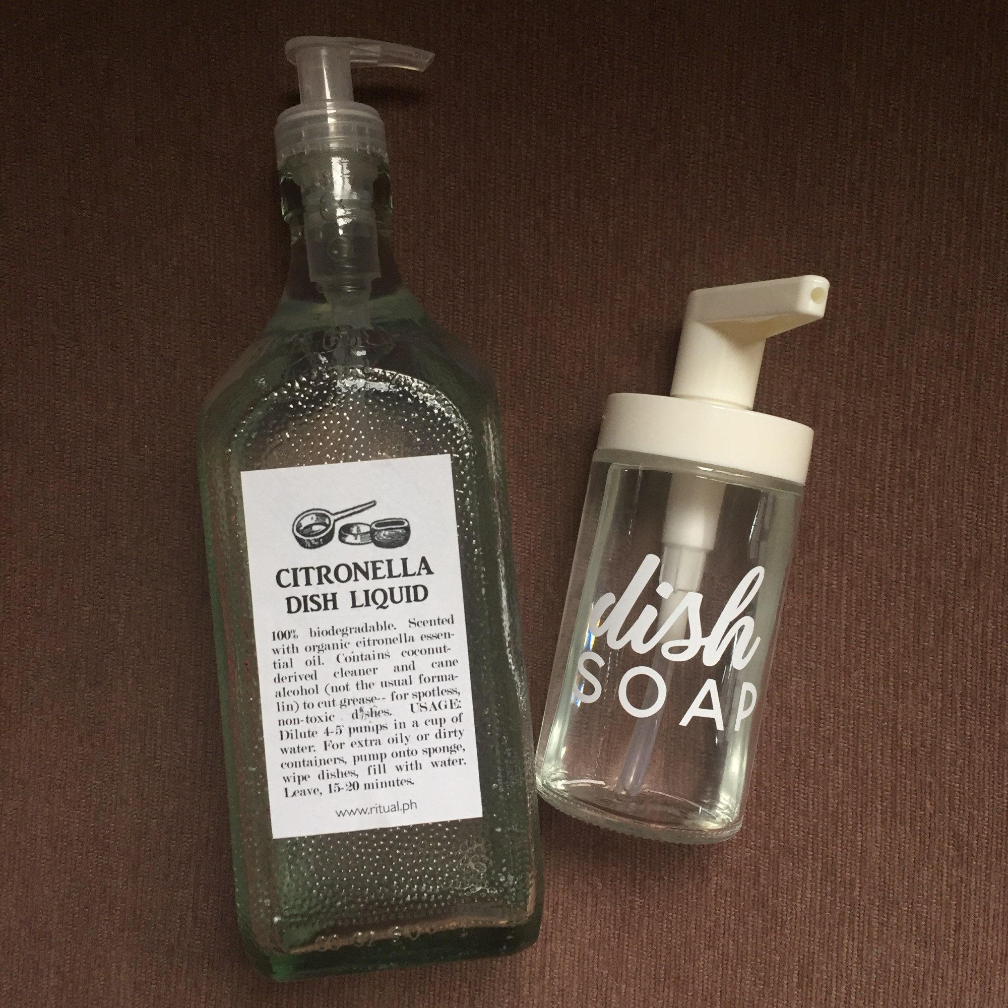 - from dishwashing liquid soap in a plastic bottle to liquid soap in a refillable glass bottle (ritualph)