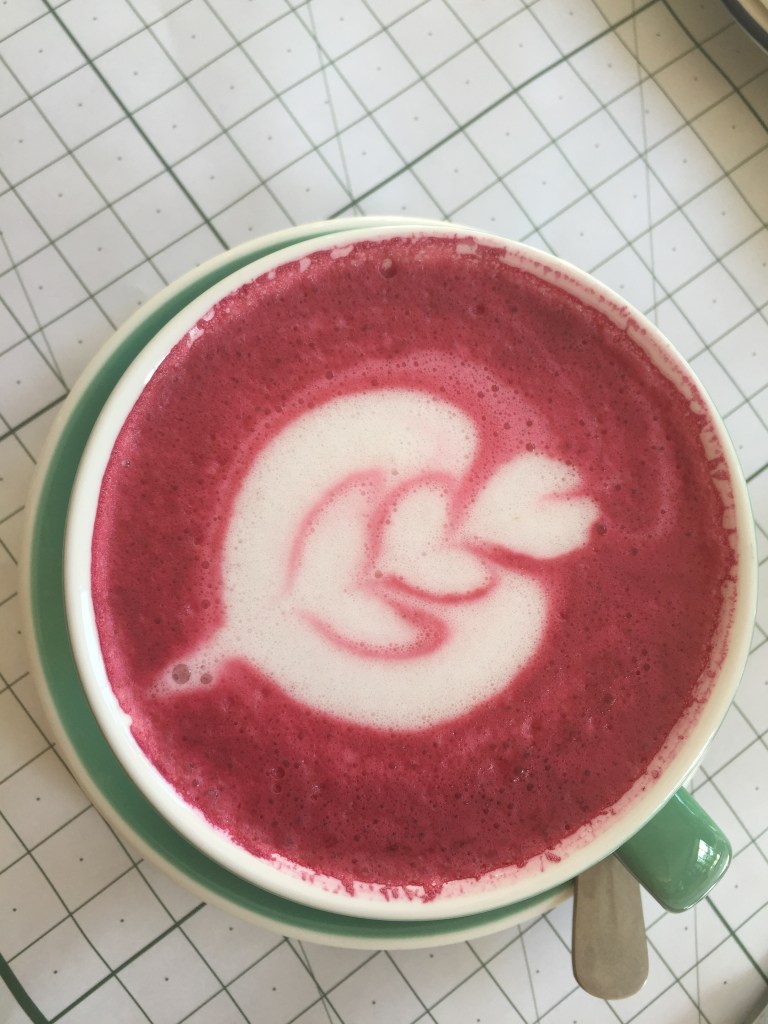 When I was browsing through the coffee selection, “pink latte” caught my attention. Before I ordered it, I asked the waiter why it’s called pink latte, as soon as I heard beetroot and almond milk, I knew it was something worth trying. And I was right. 🙂